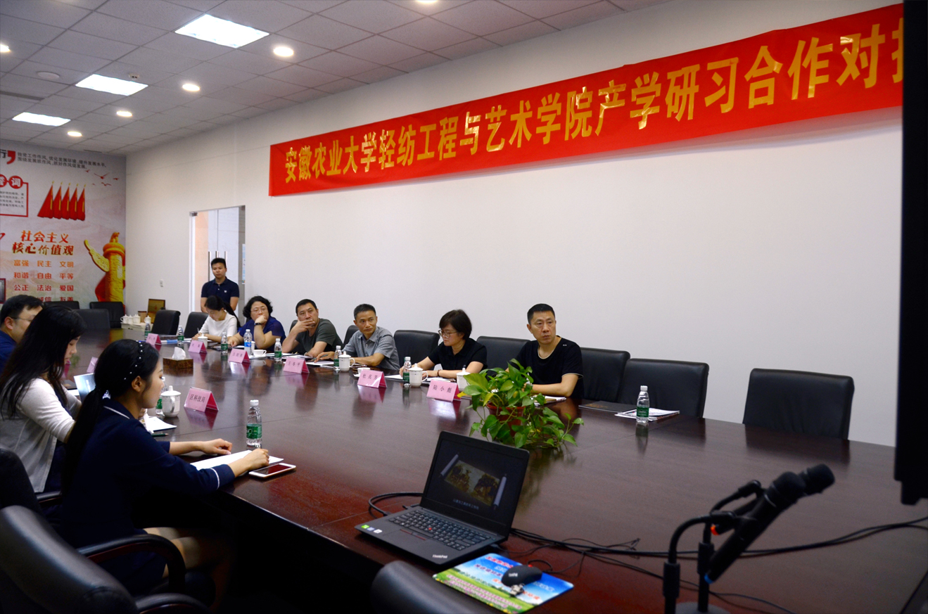 為進(jìn)一步加強(qiáng)校企合作,加大成果轉(zhuǎn)化力度并促進(jìn)學(xué)生就業(yè)創(chuàng)業(yè),7月21日上午,安徽農(nóng)業(yè)大學(xué)輕紡工程與藝術(shù)學(xué)院黨委書記王冬平、院長杜兆芳、院黨委副書記呂劍秋、副院長陸小彪、紡織系主任劉陶、院辦主任周玲來園開展產(chǎn)學(xué)研習(xí)對接會,區(qū)人社局局長陳鈞、科技局局長張勝娟、經(jīng)信局局長龍士海、礱坊科技副總經(jīng)理卞國琛、部分工作人員及園區(qū)企業(yè)代表參加會議。