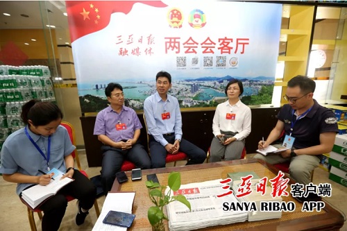 1月16日,市人大代表在三亞日?qǐng)?bào)融媒體兩會(huì)會(huì)客廳,接受三亞日?qǐng)?bào)融媒體記者采訪。